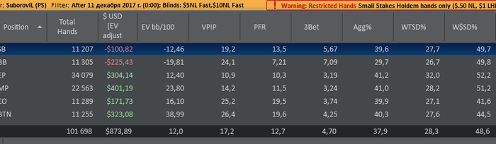 Первые 100к рук миксом 5-10. 950 рук/час. С скромными плюхами почти тыщенка накапала. В принципе 1000-1500$ в месяц можно на зум10 делать не особо напрягаясь.
