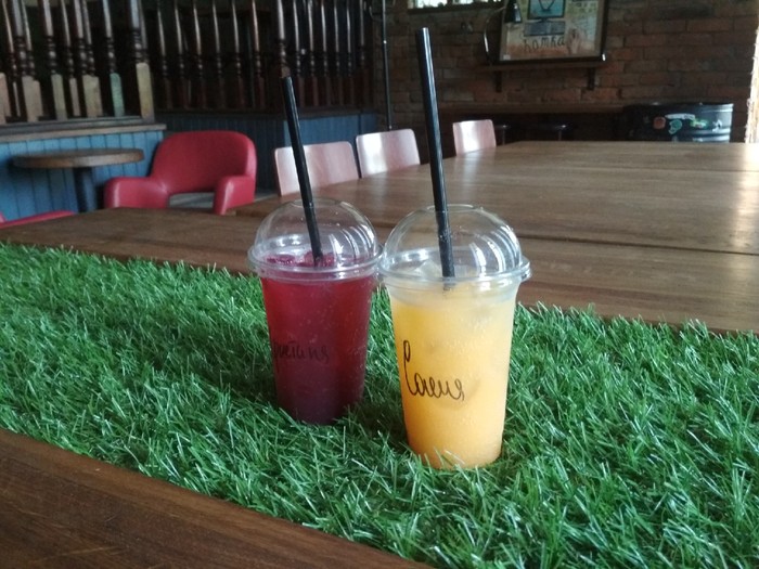 Уже начали открываться первые кофейни, в одну из которых мы и зашли, не помню название, но там было миленько и столик с искусственным газоном, короче нам там понравилось.