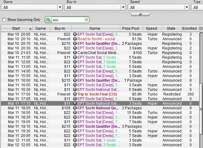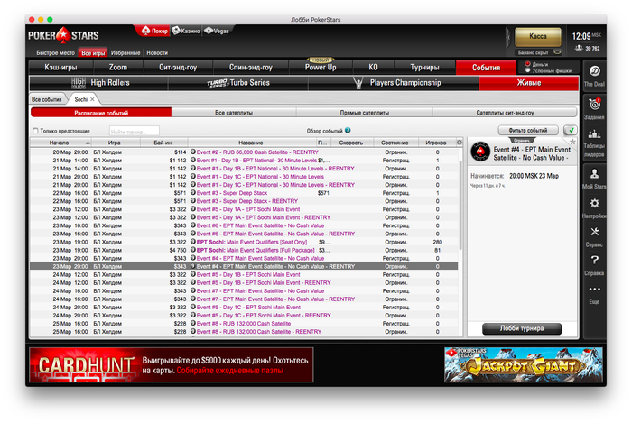 События >Живые > Все события> Европа> ЕРТ Sochi>Открыть лобби турнира.
