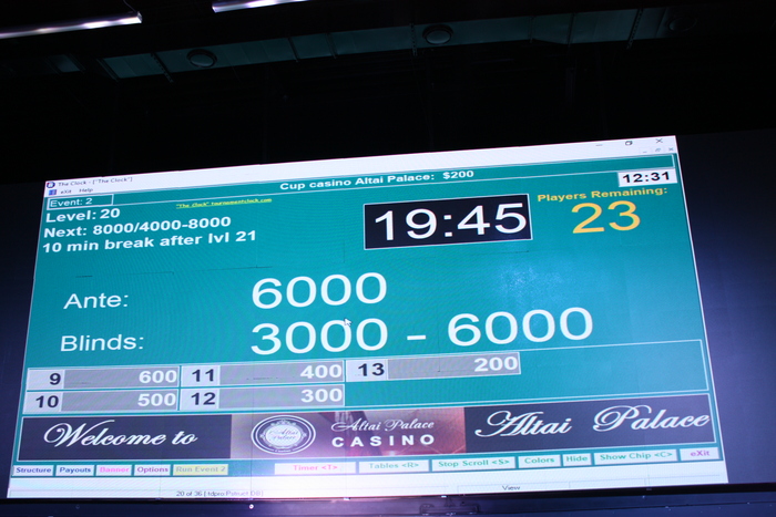 Всем доброго времени суток! Мы продолжаем турнир: КУБОК КАЗИНО АЛТАЙ ПЭЛАС, финальный день! Поздняя регистрация закрыта. 116 входов, в игре 29 участников. Блайнды 2,5К/5К, анте 5К