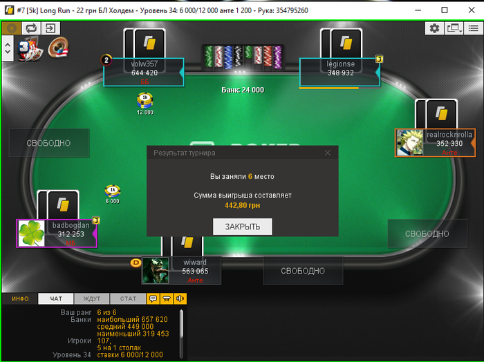 Добрый вечер! Уже вторник, а я еще не поделился даже воскресными результатами... В воскресенье играл, уже наверное мой любимый турнир на ПокерМатче - Sunday PKO Champions с гарантией 150К, на который выиграл лишь один билет, которого вполне хватило. Однако в этот раз на финалку залететь не вышло. Не смотря на не ожидаемый дикий пер в середине турнира, который, к сожалению закончился когда оставалось совсем немного и как итог: