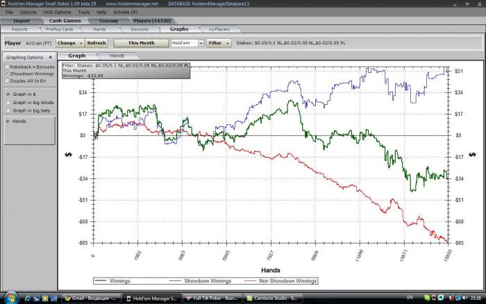 197,07 по игре особых нареканий в принципе нет, а вот гсч пока меня мучает сет в сет, трипс в трипс против фиша, и пара раздач где я плохо сыграл ооп. Зато проплатили AA префлоп с АК. но в принципе особо прибыльных раздач нет, пока держусь за счет того что не заливаю и выигрываю свои руки. вот кстати есть раздача.