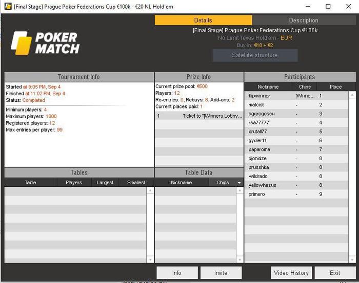 В воскресенье, 9 сентября на PokerMatch завершились онлайн-сателлиты в Главное событие серии PFC в Праге.