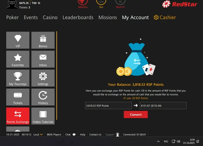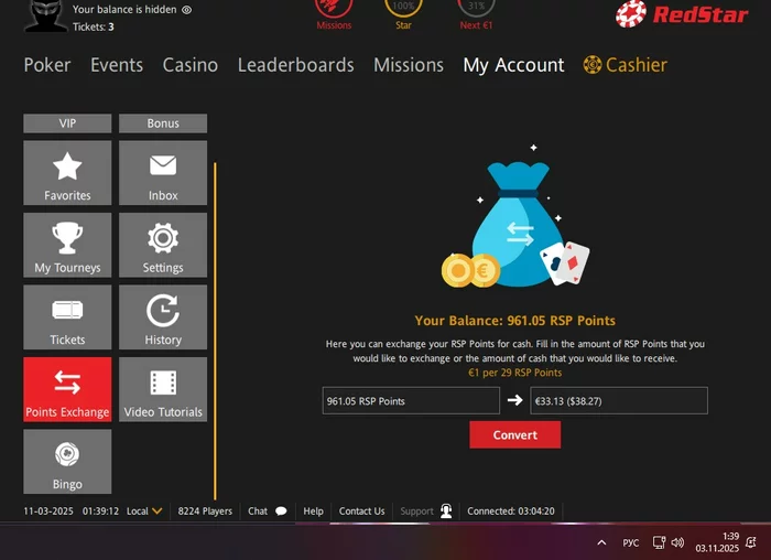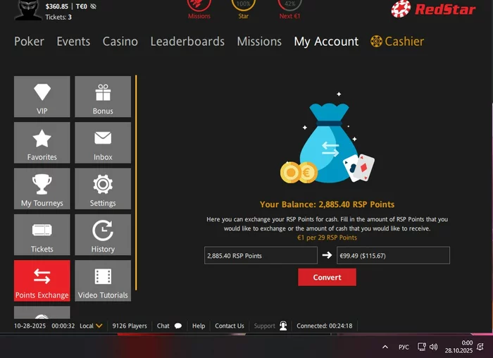 В кассу теперь смотрю раз в неделю что бы более мотивированей играть.Пойнты конвертировал вчера.