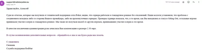 Ну хоть что то вернули. Спасибо и на этом. Поддержка редстара более менее лояльна но всё равно жадная.