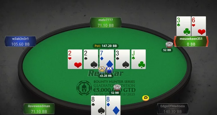 Это надолго.Этот лимит если чесно дурной.Всё что ниже нл20-это просто треш,там просто рейк сжирает винрейт если вступить в битву с местными,полный рандом в действиях,оч агрятся на мелкие сайзы и телефонят по 3 паре несколько улиц на крупные сайзы.Про овербеты в блеф или полублеф вообще лучше забыть,они не понимают что это такое и просто играют по чуйке.Причём только на этом лимите,на нл4 или нл20 такого не замечал. В конце перед закрытием столов решил стеканутся префлоп с випом с 77 в 150бб стеках который пушил каждую руку.Он показал 99 и разом сразу закрыл столы.Хер с ним.