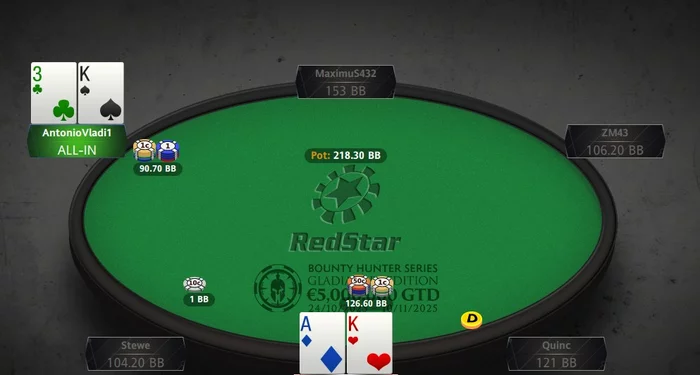 Проиграл 3 вей пот алын на тёрне с 1 натсом из за того что вылетела ошибка клиента и рука пошла в автопас.Написал в подержку о компенсации,попросил расчитать моё EV ожидание в 3 вей алыне по силе руке.Посмотрим что ответят.