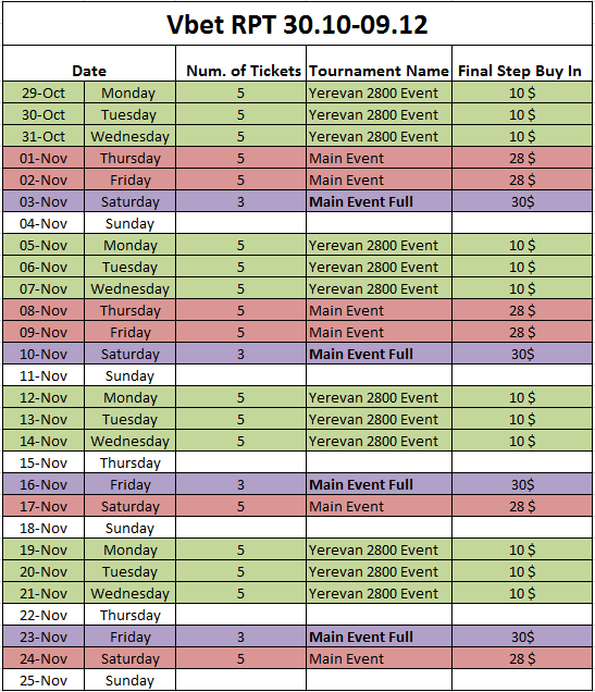 Всем доброе утро! Последняя неделя онлайн сателлитов, в течении которой мы разыграем еще как минимум 28 билетов (включая 3 Пакета на Главное Событие). Всего уже разыграно более 80!!! билетов. А у нас стартуют 3 дня сателлитов на RPT Yerevan 2800 Event.