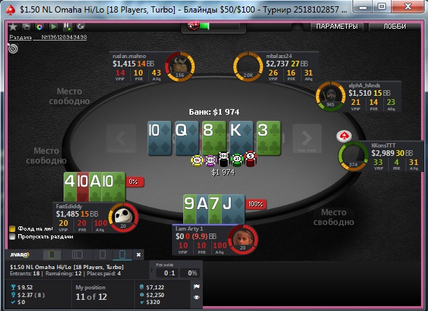 Также поигрываю гипертурбо-сателлиты по нлх на Party, поля хорошие, в пуш-фолде холдема я очень плох, но постфлоп нлх по сравнению с нло8 ну очень простой, спектры оппонента выстраиваются достаточно легко, ну как легко, легко на фоне нло8, где на постфлопе чтобы понять где ты находишься нужно сидеть и тупить весь таймбанк, вот так и получается, в нло8 очень хорошо владею префлопом, а постфлоп как выяснилось начал изучать только в этом месяце , а в холдеме наоборот, на префлопе в пуш-фолде время таймбанка не на размышление идет, а обезьяна в голове сидит и в ладоши бьет, хоть распечатывай этот пуш-фолд на листочке и сиди подсматривай)) Первое время я так и делал в нло8, до сих пор шпаргалка около монитора лежит, но мне как настоящей ленивой свинье неохота с этим всем разбираться с непрофильной дисциплиной, которая итак играется в плюс, ради Party пришлось скачивать в этом месяце PT4, потому что мой Jivaro работает только на PS, очень нравится этот новый софт, как закончится триал куплю полную версию для нло8 и холдема, удобно очень, на всех румах смогу использовать во все дисциплины и как на Jivaro не придется каждый год по 60$ платить, а один раз 150$.