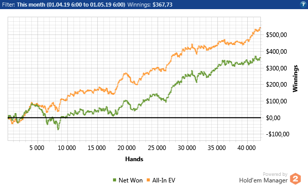 Дайжест этого месяца, чуть дальше попотробней. Недоборы хуеборы, борьба с уебками и куча негодования. Вот как прошел этот месяц. В середине месяца после запоя лудомании, я решил сконцентрироваться на покере. У меня было 15би и чтобы вы думали?Меня стрикануло на 15би, по ев в ноль. Пришлось брать бэкинг в срочном порядке и катать катать катать. Сейчас доволен собой более или менее но все же надо идти дальше и работать.