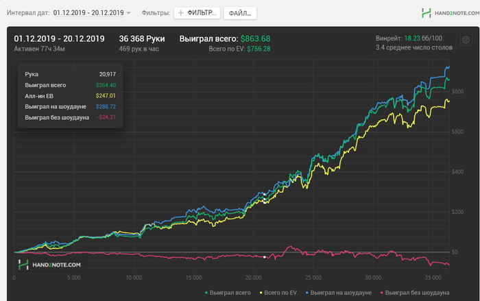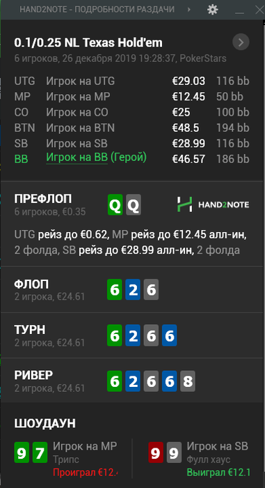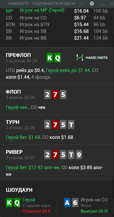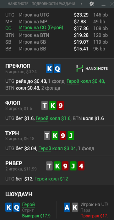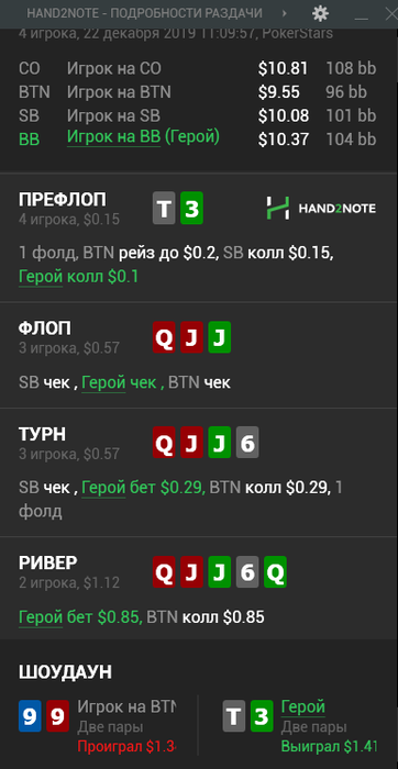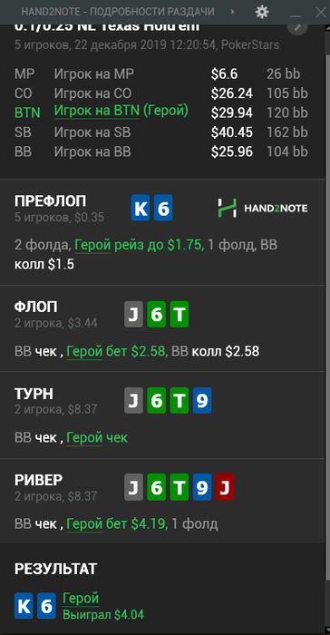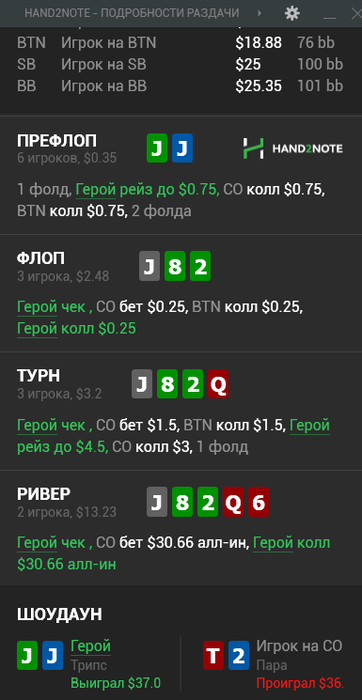 Arabusta, раздача с АТs жесть, конечно! Узнаю себя и свои фирменные отмороженные блефы на стек Но на самом деле после колла флопа на сайзинг пол-пота по сухому борду там чек-фолд дальше(имхо).
