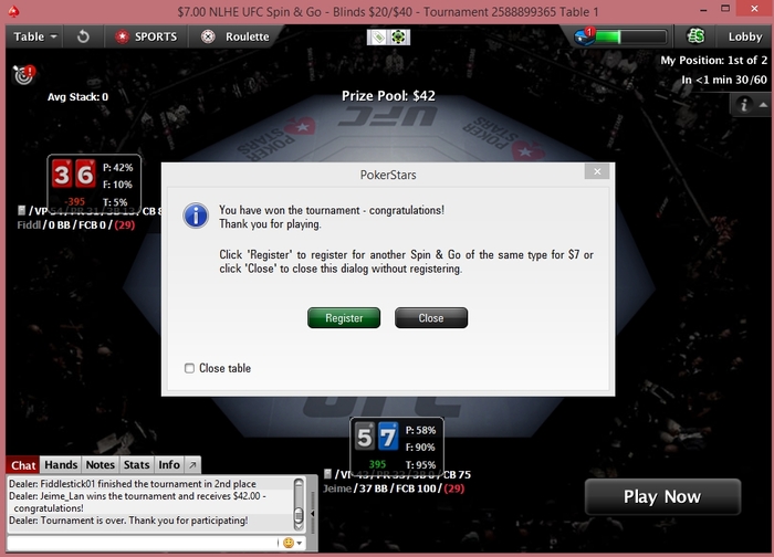 мне в этих барабанах больше чем билет на 10 центов ни разу не выпало))) вчера решил его отыграть - играл оллын фолд, занял третье место - 3 с чем то долларов, но 42 конечно по пизже будет