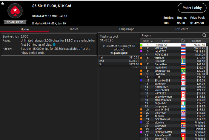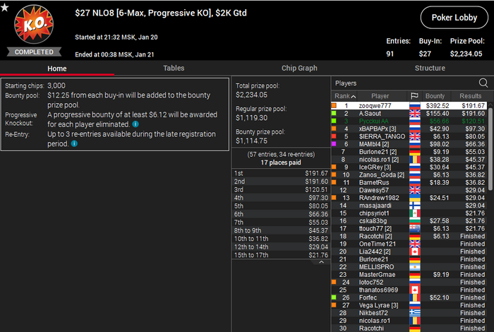 В целом неплохо поиграл серийник на ГГ покерке, грусть и печаль от пропуска Scoopa конечно есть, все таки пропущены все профильные турниры которые идут 2-3 раза в год. В лидерборде на пике ворвался в топ30, давали 750$ жаль не удержался
