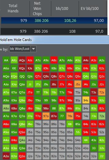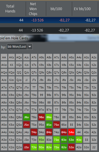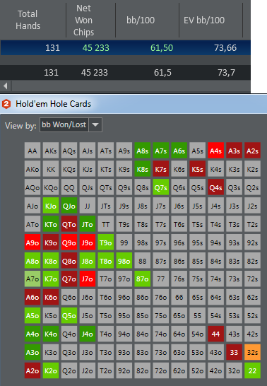 Стал меньше 3бетить,меньше блефовать на флопе,из-за чего красная летит с парашютом.Защищаю свой чек Но и вроде винрейт на SB чуть поднялся,в конце месяца тогда сравним.На работке началась работа