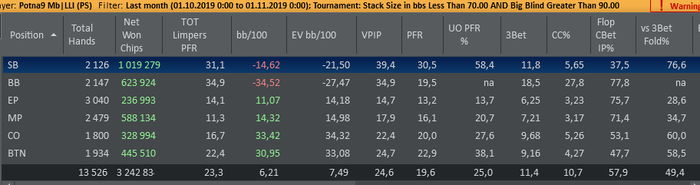 Провел небольшой разбор за последние 4 месяца т.е. с 1 июля и по 1 ноября. Потратил много времени,но я думаю это +EV однозначно 1)Проверил UO PFR % по стилящим позам CO/BTN/SB, чуть затронул MP 2)Защита BB против RFI 100%(Any two),в основном это оппы с SB 3)Изоляция BB со спектром SB/Изолировать c SB со спектром UTG 4)Cbet 40% на флопе(IP/OOP),после изолейта(1 опп) 5)Блеф 3bet c BB против RFI 45%+(в основном SB/BNT/CO)(на флопе 1х1) 6)Общий 3bet по позам BTN/SB vs CO ___ SB vs BTN