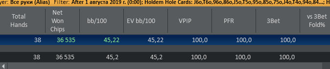 Разница вроде очевидна,пойду дальше,добавлю такие руки из рандом спектра A8s/A7s/A6s/KJо/K10о , в спектр изоляции.Посмотрим что из этого получится. 4.Cbet 40% на флопе(IP/OOP),после изолейта(1 опп) Были ситуации где 2+лимпера,но в общем я думаю понятно.(не смог настроить фильтры)