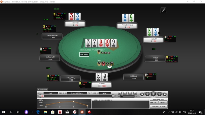 У тебя абсолютный натс на флопе, топ ренжа, как не колоть, если такие разадчи тебя волнуют, надо а корне менять отношение к игре, в психологическом плане), на счёт раздачи в студию, тебе надо не реплеер открыть, а нажать копи, там где раздачи в ряд идут, потом через конвертер или напрямую кинуть сюда в текстовом виде, у самого давно не хм, не могу наглядно показать