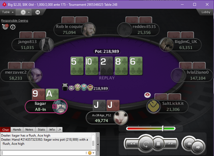 Играешь с кайфом Приходят валеты Думаешь ну чо поиграем ща Ставишь 3бб, так как все фолд ББ даёт 3бет оллин 54бб я кол господи, как ему в голову то это пришло