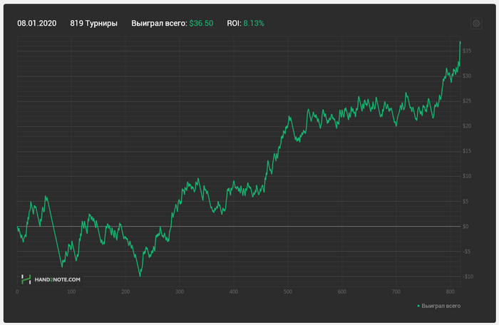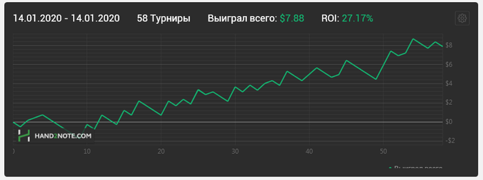 Не понял почему hand2note неправильно стал считать турниры, вот например я сыграл сет туриков в -0.50$ , а вот график из х2н . Пару часов пытался пофиксить но ничего не вышло.