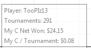 Сегодня сыграл совсем мало , к единичкам добавлял 0.25 , потому что столько столов сколько мне надо не собиралось на единичках. Сделал вывод , что во всех турнирах дешевле доллара у меня трекеры неправильно считают прибыль , так что позже опять буду историю рук заказаывать.