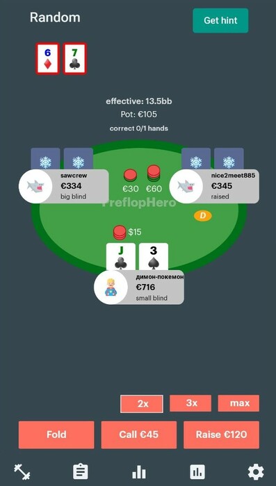Plastilin, отличная программа, успехов в реализации!!! Как смотришь на то, чтобы сделать пустой чарт в виде раскраски? Например выбираем чарт BTN 13-16bb, сами рисуем где у нас Push, MR\Fold, MR\Call , а затем программа указывает где мы ошиблись.
