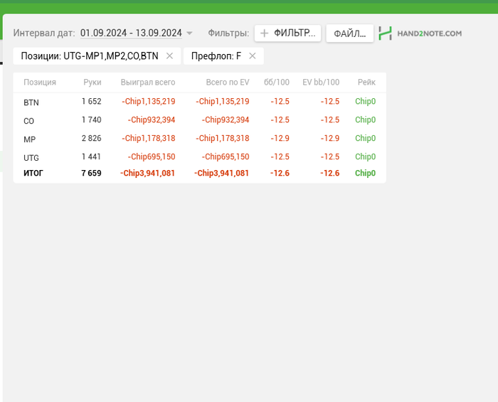Когда мы сбрасываем карты префлоп(фолдим) то играем с показателем - 12.6 ев\бб на 100.