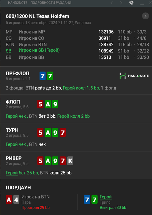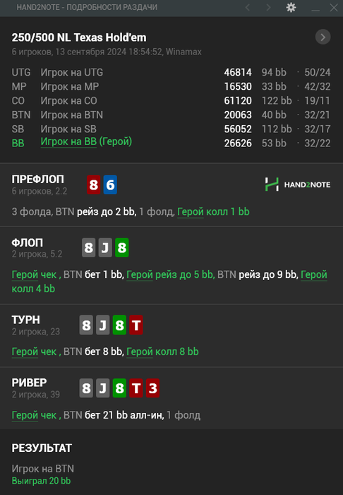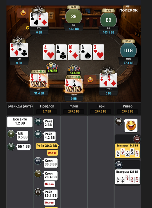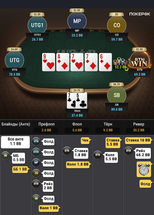 5.Агрессия ради агрессии, не умение подстраиваться под оппов, игра по шаблонам, желание выигрывать все раздачи. Чек это не всегда слабость, думаем перед действием, вспоминаем, что было на прошлых улицах и какие сайзы…. Помните у чека тоже есть ЕВ.