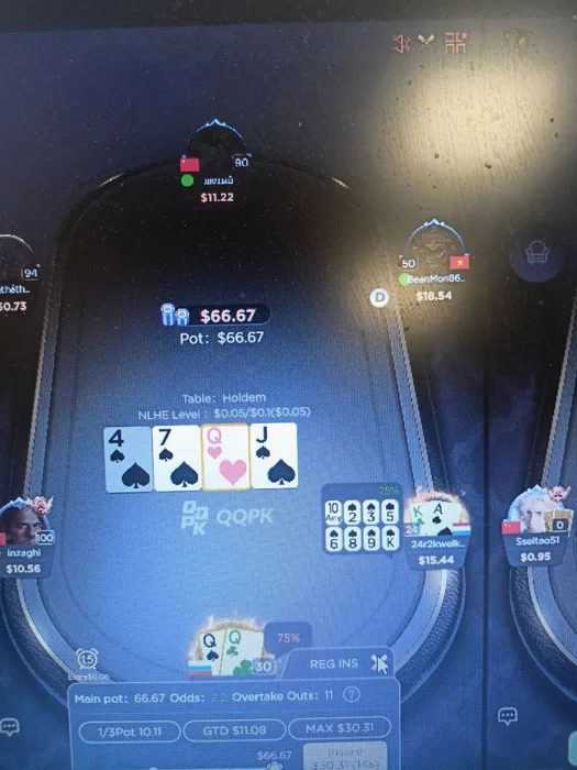 QQPoker беспощаден, я побывал в китайском аду. Начинал в этом руме очень бодро. Кажется, за первую неделю с 40$ поднялся до 218$. Было очень приятно получать ререйзы в мои натсы от любителей с VpIP 50+. В день делал по 3000 рублей. Для лимита 0,05-0.1$ очень даже неплохо))) А потом началось какое-то, мать его, КУНГ-ФУ.
