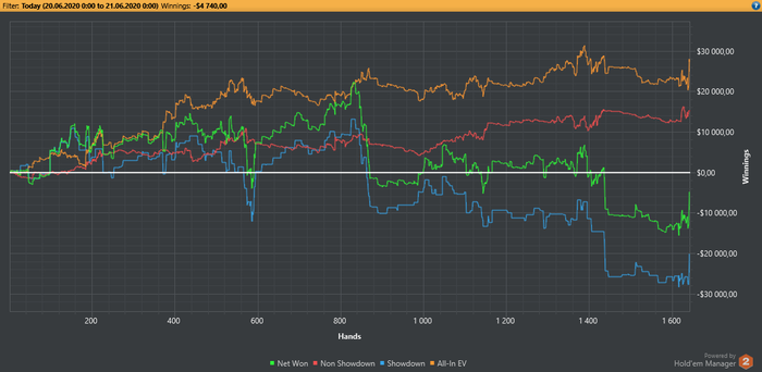 Раздача vs рег, префлоп оллин: JJ vs AKo, я вин с валетами и выбиваю его Спустя 10 сек другой стол, префлоп оллин: AKo vs JJ, он меня с валетами выбивает