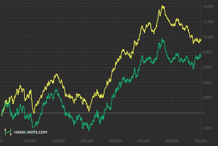 Хотя рубильник может резко переключиться и опять будет и 50 и 60 и 100 стеков недобора. Так что пока совсем не радуюсь. Скоро всех переведут на сочи, я хз как общий график делать, поэтому оставил этот для истории. Тут ровно 702 186 рук и я ни разу за такую огромную дистанцию не перебрал.
