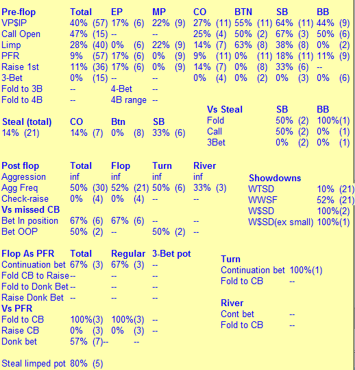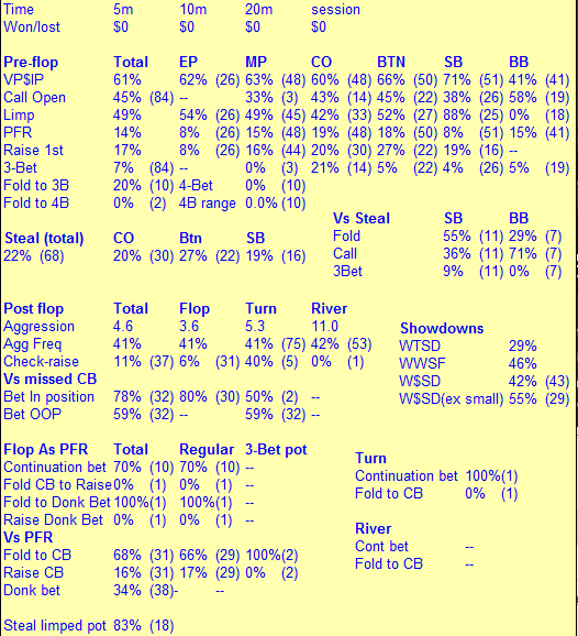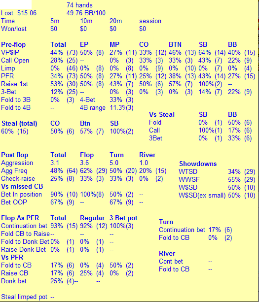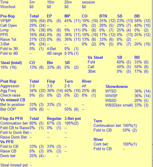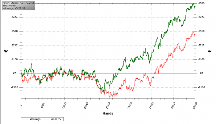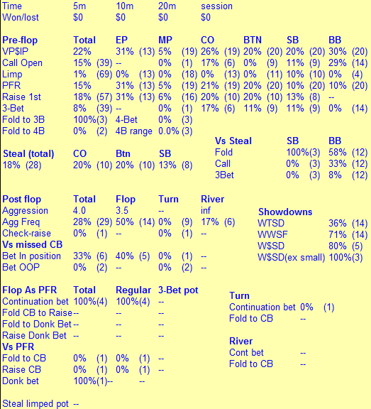 Через пару дней после предыдущего поста неожиданно вспомнил что покер говно впал дней на 10 в полнейшую апатию от покера и отдыхал аж до конца апреля. В мае сменил рум (та же сеть) и продолжил гриндинг на нл20. Сейчас (уже второй или даже 3ий день) опять пытаюсь закрепится на полтиннике , ну вопщем как всегда =)
