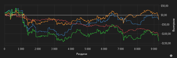 Ugrand @ 08.07.21madmaf, Ты находишь ошибки только в минусовых раздачах, или в плюсовых тоже? Я к тому, что твоя С-игра может давать "незаслуженный" профит в выигранных раздачах.