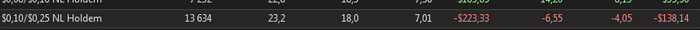 Месяц идет крайне тухло. Пытаюсь играть преимущественно nl25, но выходит плохо, в отличии от nl10/16. Возможно дело в восприятии лимита (можно смеяться), но такое было, когда год назад я перешел на nl10 и тоже меня сильно шатало. Не знаю, бабки наверно давят, надо исправлять.
