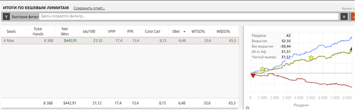 Коллеги, сложная для меня раздача. Оппонент 25/18 wtSD/wwsf/wonSD 28/48/50. Всерьез думал о фолде ривера. Есть ли тут фолд, или это слишком нитово?