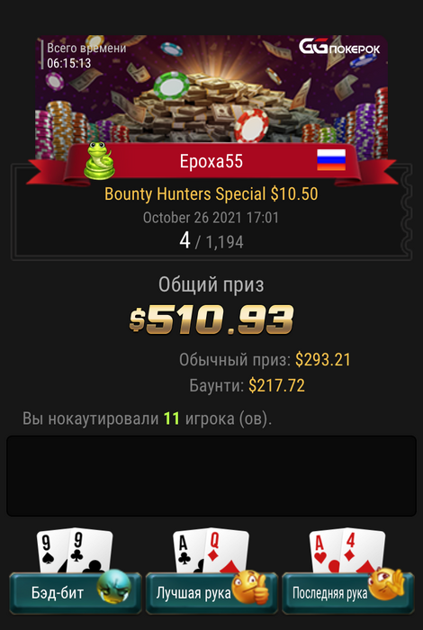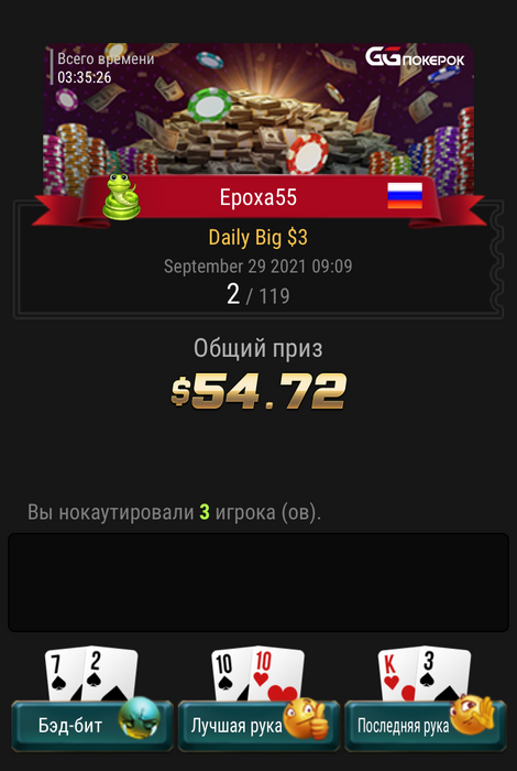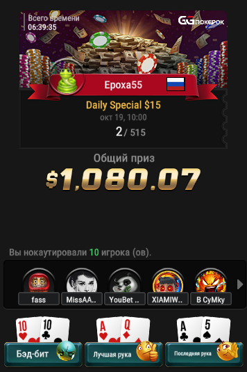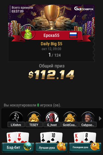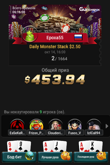 Привет тебе, удачи, успехов и правильных решений за столами)) (но не против меня ) часто пересекаемся на GG (B CyMky)