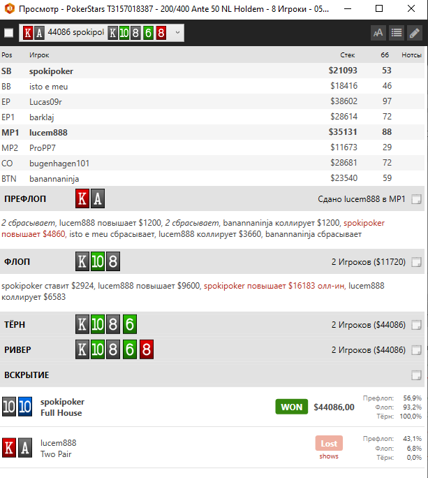 Я предлагаю разбирать те раздачи где были выставления и игра до шоудауна, но при этом скрывать руки оппа. А потом если есть надобность - показать, ну чтобы вместе тренировались читать руки.