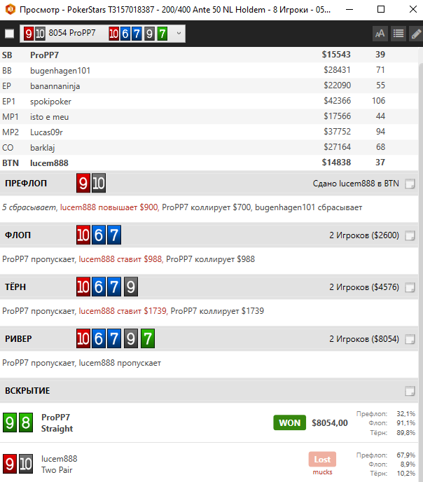 Таким образом при рассуждении мы не будем привязываться к результату и возможно сможем быть более объективны в рассуждениях, а также будем тренироваться играть против ренджа, а не против руки которую опп показал. А по прошествии времени, если хочешь, можешь открывать нам тайну руки оппа.