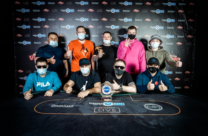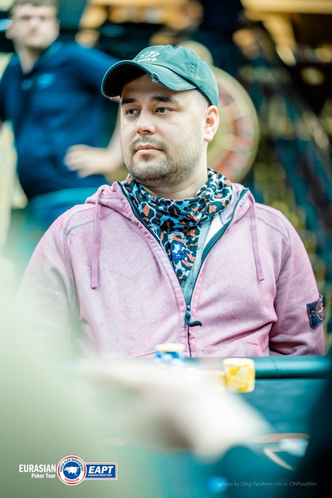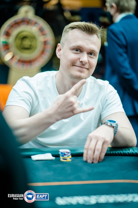 Евгений Тамбовцев открыл 70,000 с баттона, Глеб Сурин поставил олл-ин 431,000 с большого блайнда. Евгений нажал колл с , поехав против . Выиграть снизу не удалось. Ещё одно удвоение.