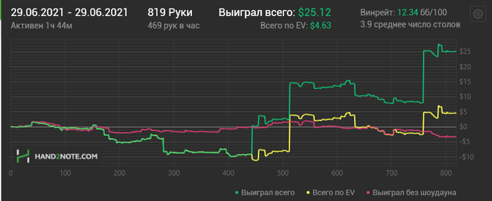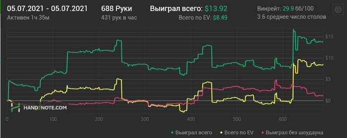 Около 8$ потерял на тупых блефах, абсолютно идиотские решения, постараюсь не повторять, а так неплохо, против фишей сдавали грязь конечно, но в целом хорошие выставления дали нормально собрать.