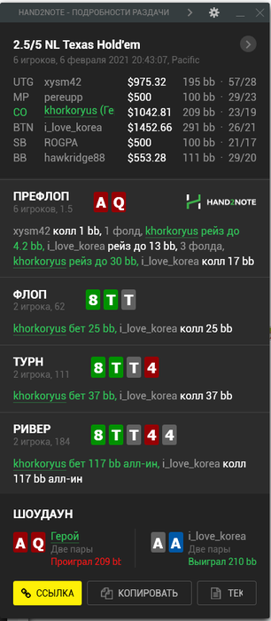 и еще вот такая вот раздачка запомнилась в дипах, как же мое очко сжалось в тот момент :) кто бы только знал