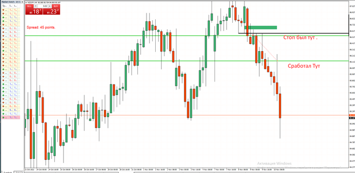 Сегодня было открыто 2 отличные операции в шорт. На выходе новостей сработало проскальзывание когда спред с 3 пунктов скакнул на 40. Стопы сработали слишком рано , после чего рынок пошел в мою сторону.