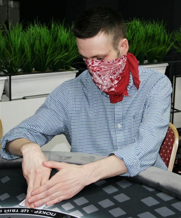 Костя решил переквалифицироваться в дилера и уже упражняется с колодой