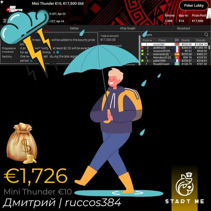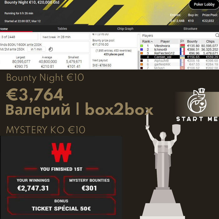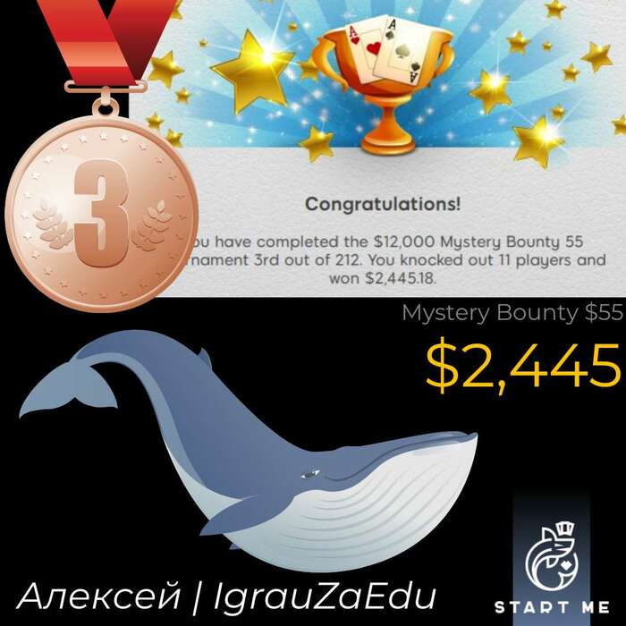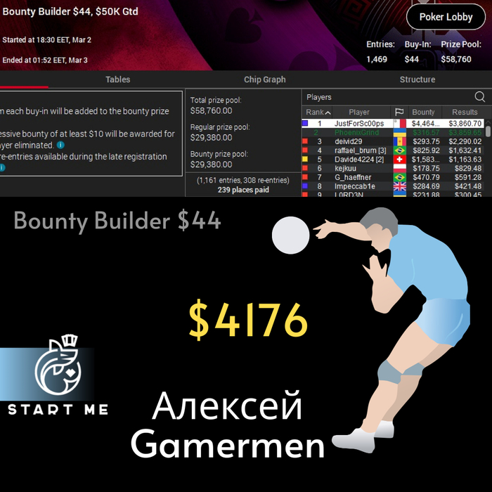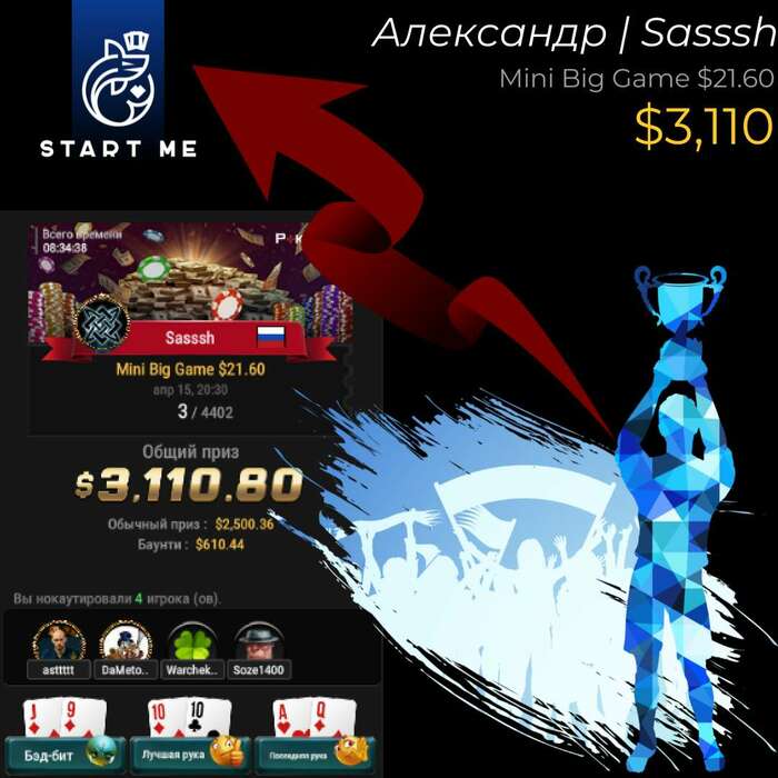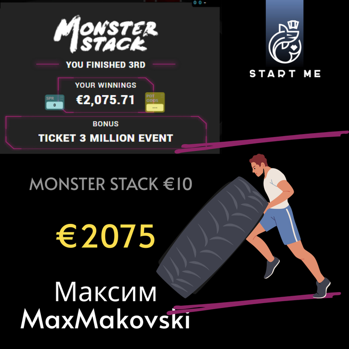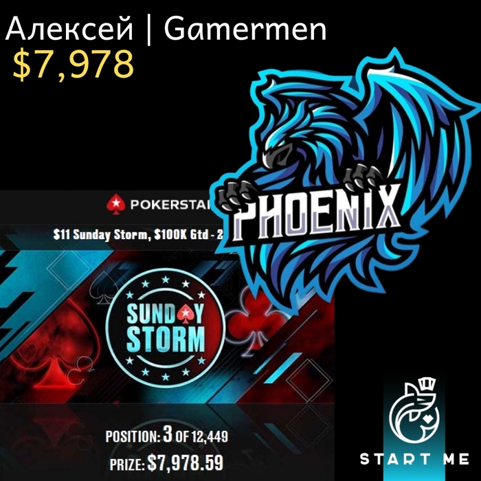 🏆 Топ-занос недели совершил игрок StartMe Pro+ Алексей | Gamermen, заняв третью позицию в $11 Sunday Storm и заработав призовыми $7,978 💰