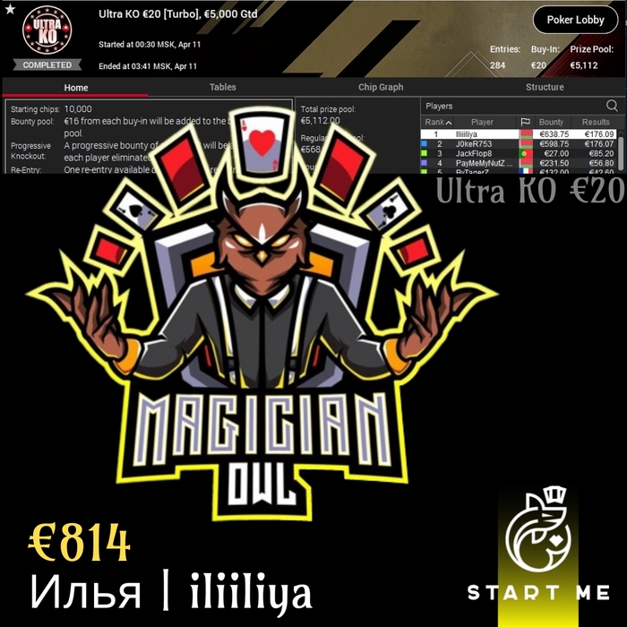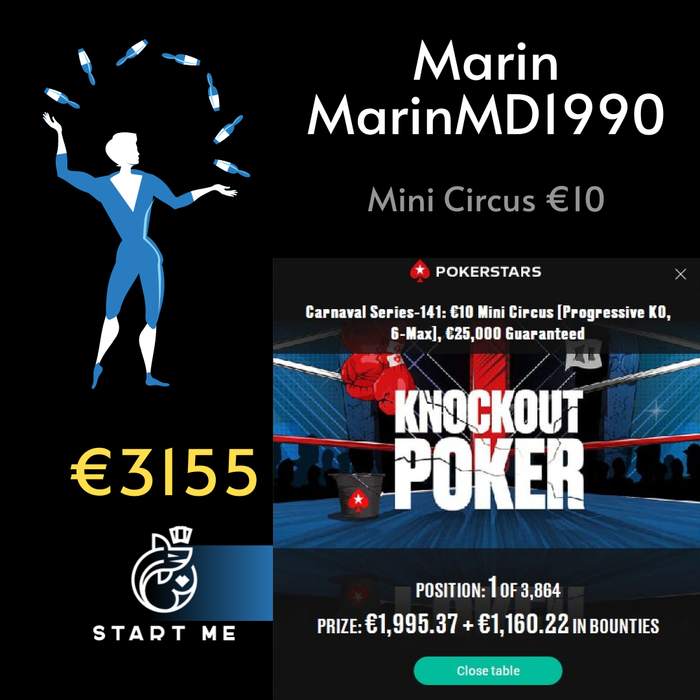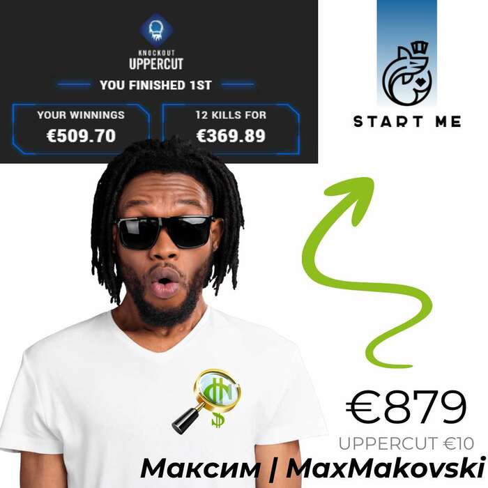 - Максим | MaxMakovski: €879 - KNOCKOUT UPPERCUT €10 (Winamax, 1/637)