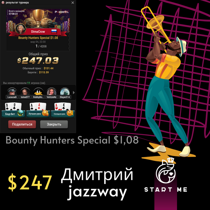 Хочешь научиться зарабатывать так же? Приглашаем в нашу школу покера https://www.startme.pro/
