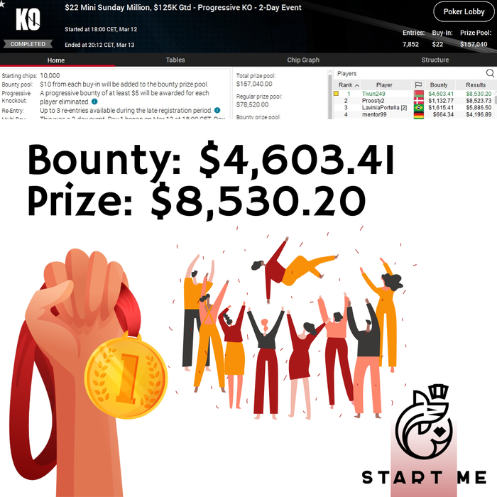 Дмитрий | Tivun победил в $22 Mini Sunday Million, обойдя под 8к соперников. Феноменальный результат, поздравляем Дмитрия! 🔥