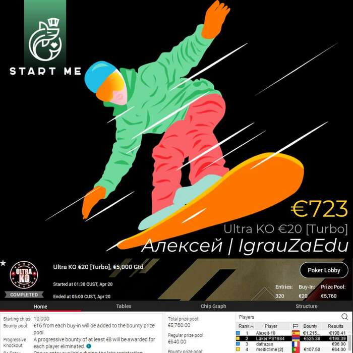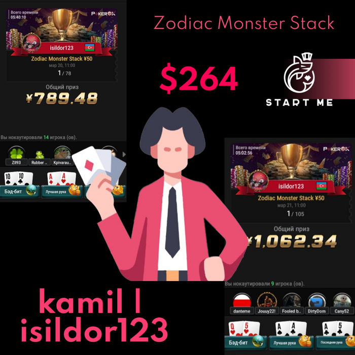- Марат | Marat1798: €587 - Ultra KO €10 (PokerStars, 1/273)