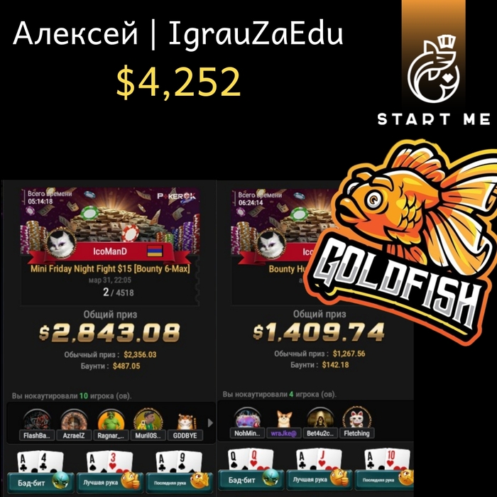 На этой неделе игроки команды StartMe выступали довольно достойно и прилично позаносили на $14k! Поздравляем наших ребят и с радостью хвастаемся результатами 🦈💪🏆🥳
