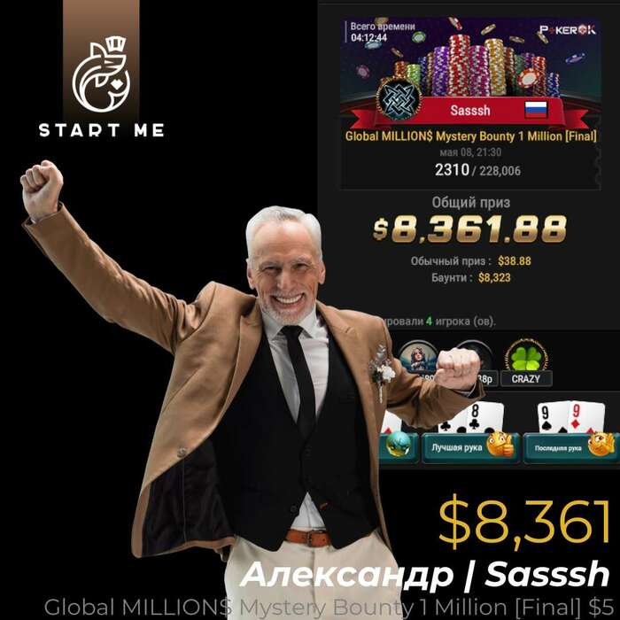 🥇 Александр | Sasssh: $8,361 - Global MILLION$ Mystery Bounty 1 Million [Final] $5 (GGPokerok, 2310/10770)