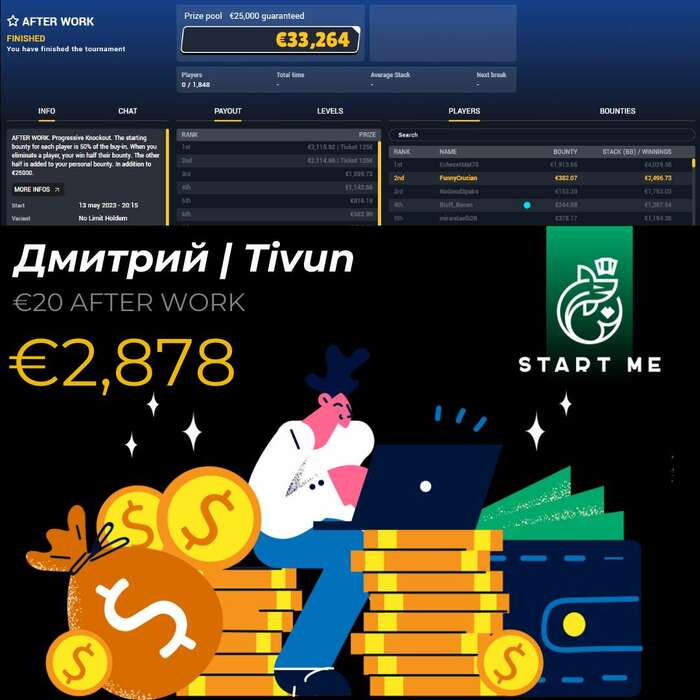 🥈 Дмитрий | Tivun: €2,878 - €20 AFTER WORK (Winamax, 2/1514)